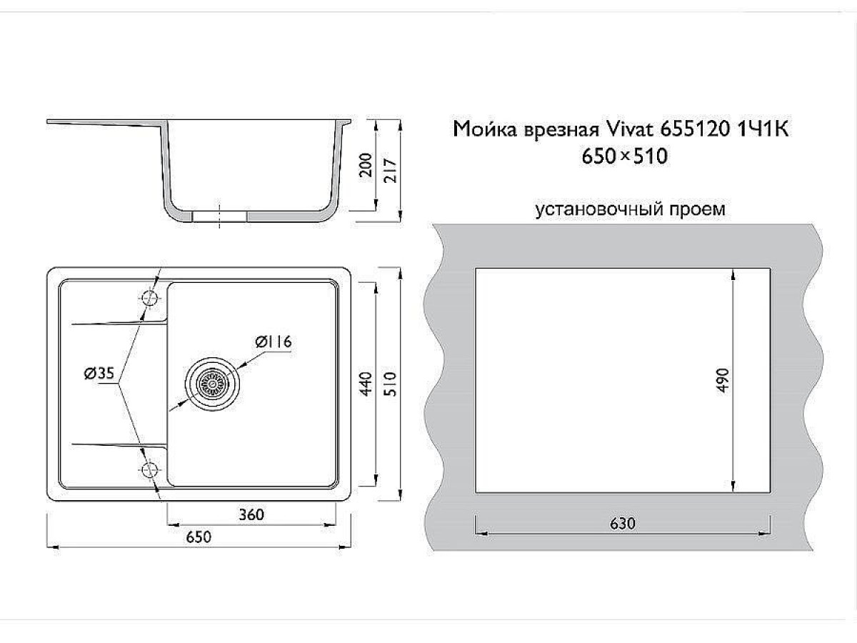Теги: Мойка врезная Vivat 655120 1Ч1К