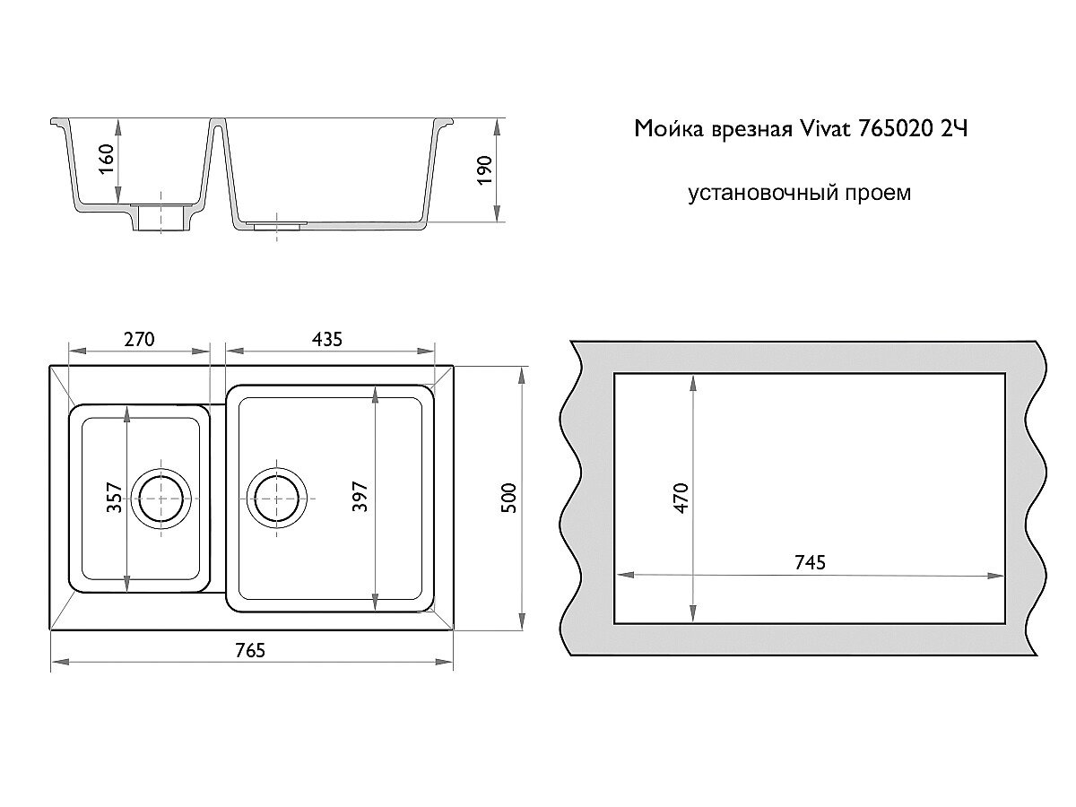 Теги: Мойка врезная Vivat 765020 2Ч