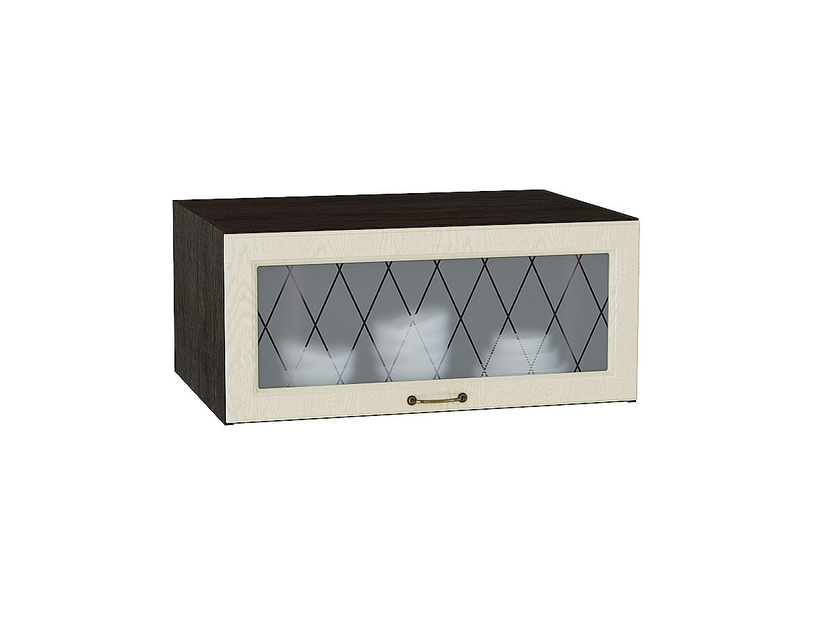 Шкаф верхний горизонтальный остекленный глубокий Ницца, цвет: Дуб крем