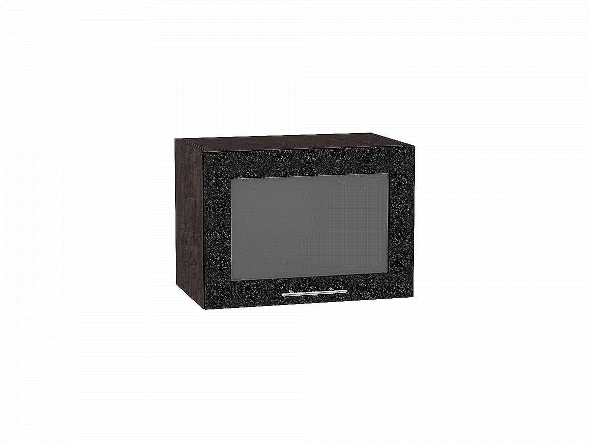 Шкаф верхний горизонтальный остекленный Валерия-М, цвет: Черный металлик