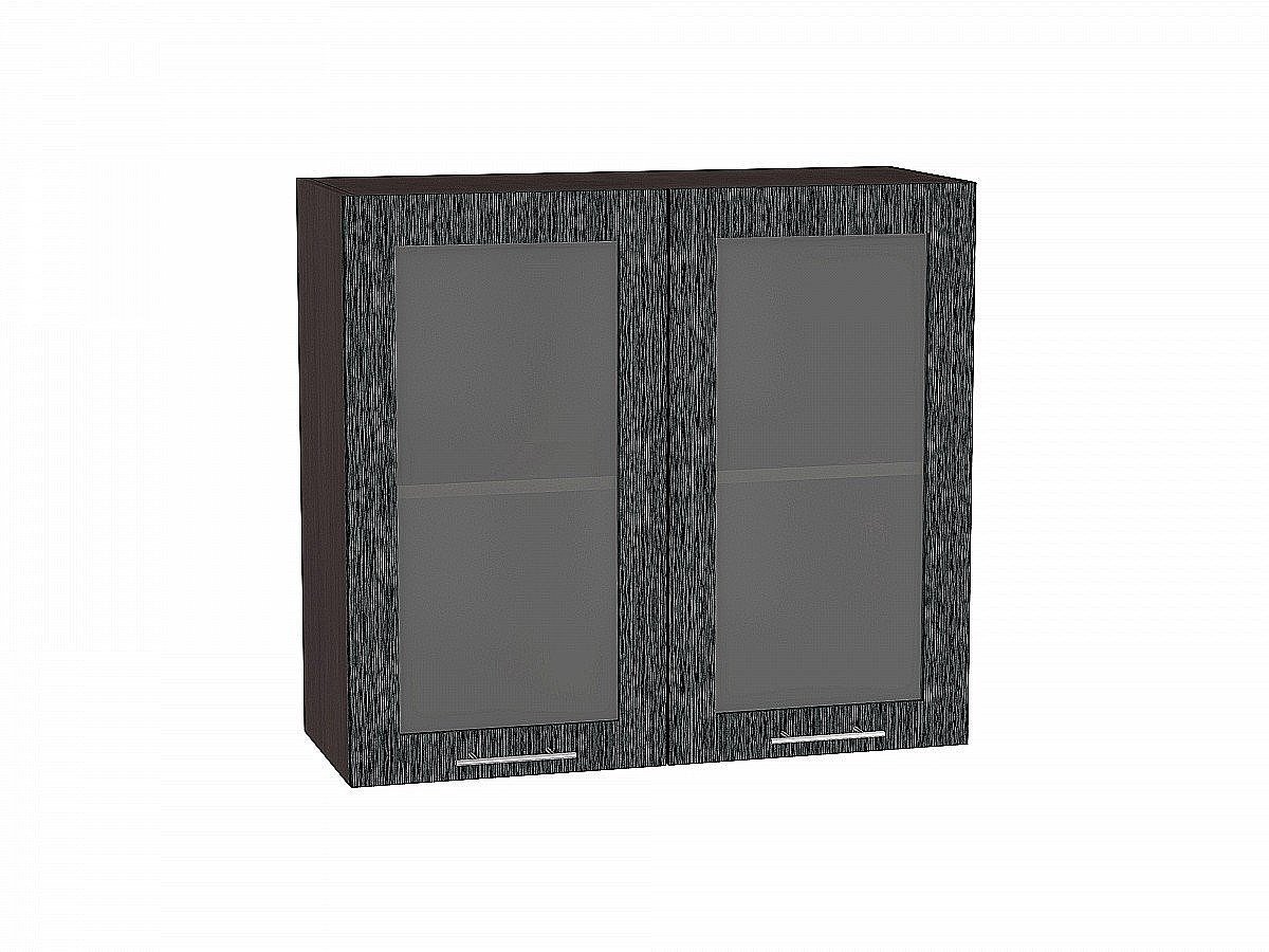 Шкаф верхний с 2-мя остекленными дверцами Валерия-М, цвет: Черный металлик дождь