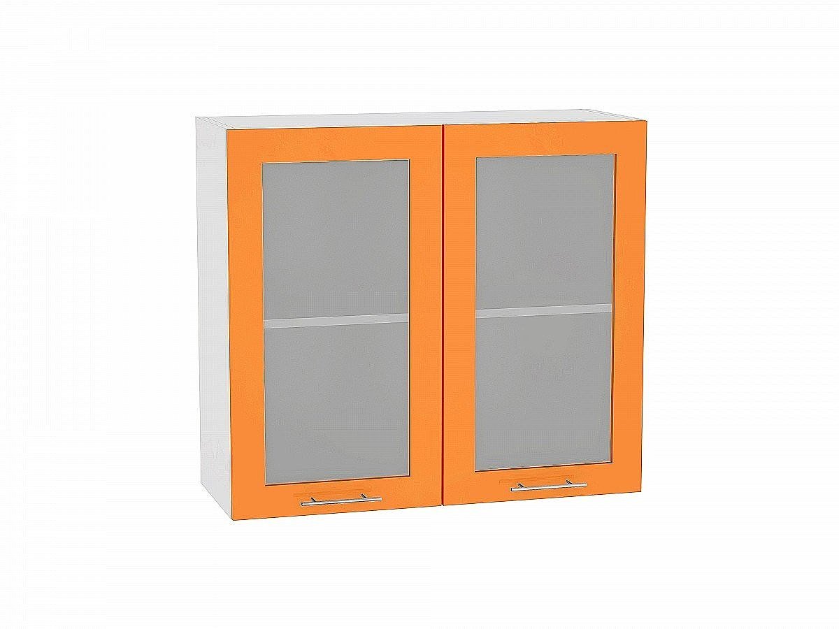 Шкаф верхний с 2-мя остекленными дверцами Валерия-М, цвет: Оранжевый глянец