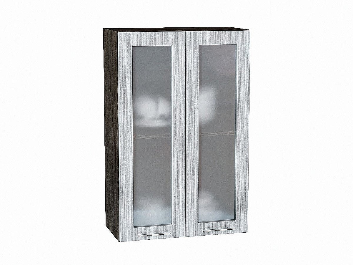 Шкаф верхний с 2-мя остекленными дверцами Валерия-М, цвет: Серый металлик дождь светлый