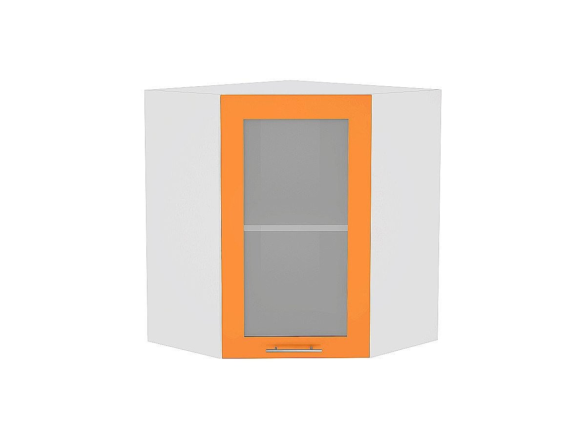 Шкаф верхний угловой остекленный Валерия-М, цвет: Оранжевый глянец